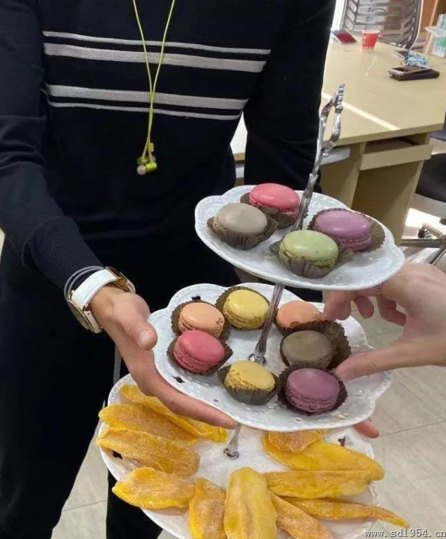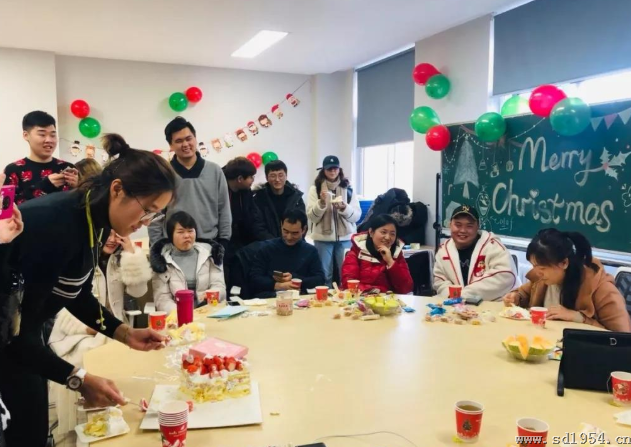 活动热烈进行中,学姐为大家端上来一块非常美味的大蛋糕。然后由王金麟教授切第一刀,表达对同学们的圣诞祝福,也意味着新的一年工作室会越办越好。每一位同学都品尝到,并且从中感受到会展工作室这个大家庭的温暖。
